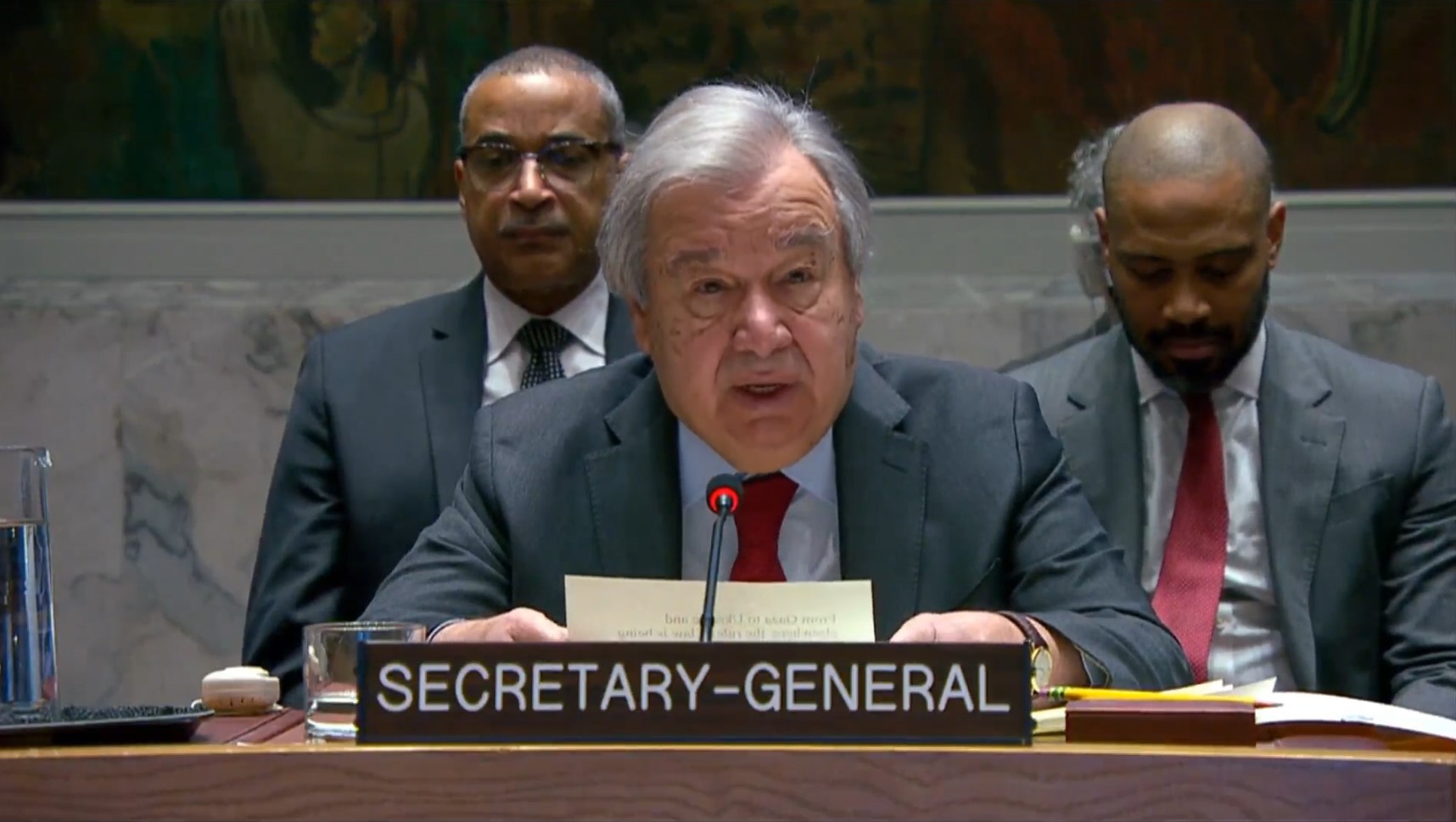 秘书长说:“从加沙到乌克兰,乃至全世界,法治正被当作点菜菜单一样随意对待。我们看到一些国家肆意践踏法治而不受惩罚;它们非法使用武力,袭击民用基础设施,侵犯和践踏人权,非法发展核武器,违宪地更换政府,并拒绝提供拯救生命的人道主义援助。”